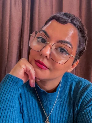 A woman with a jet black afro walked into the booth. Her full lips were painted cherry red and her dark eyes were lined in dark black eyeliner. A gold Ankh sat on a black rope around her neck.